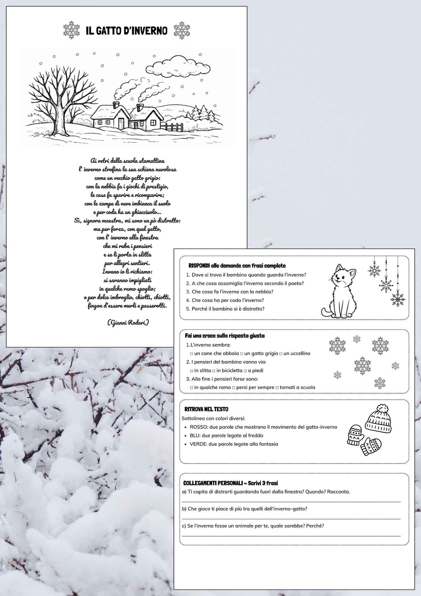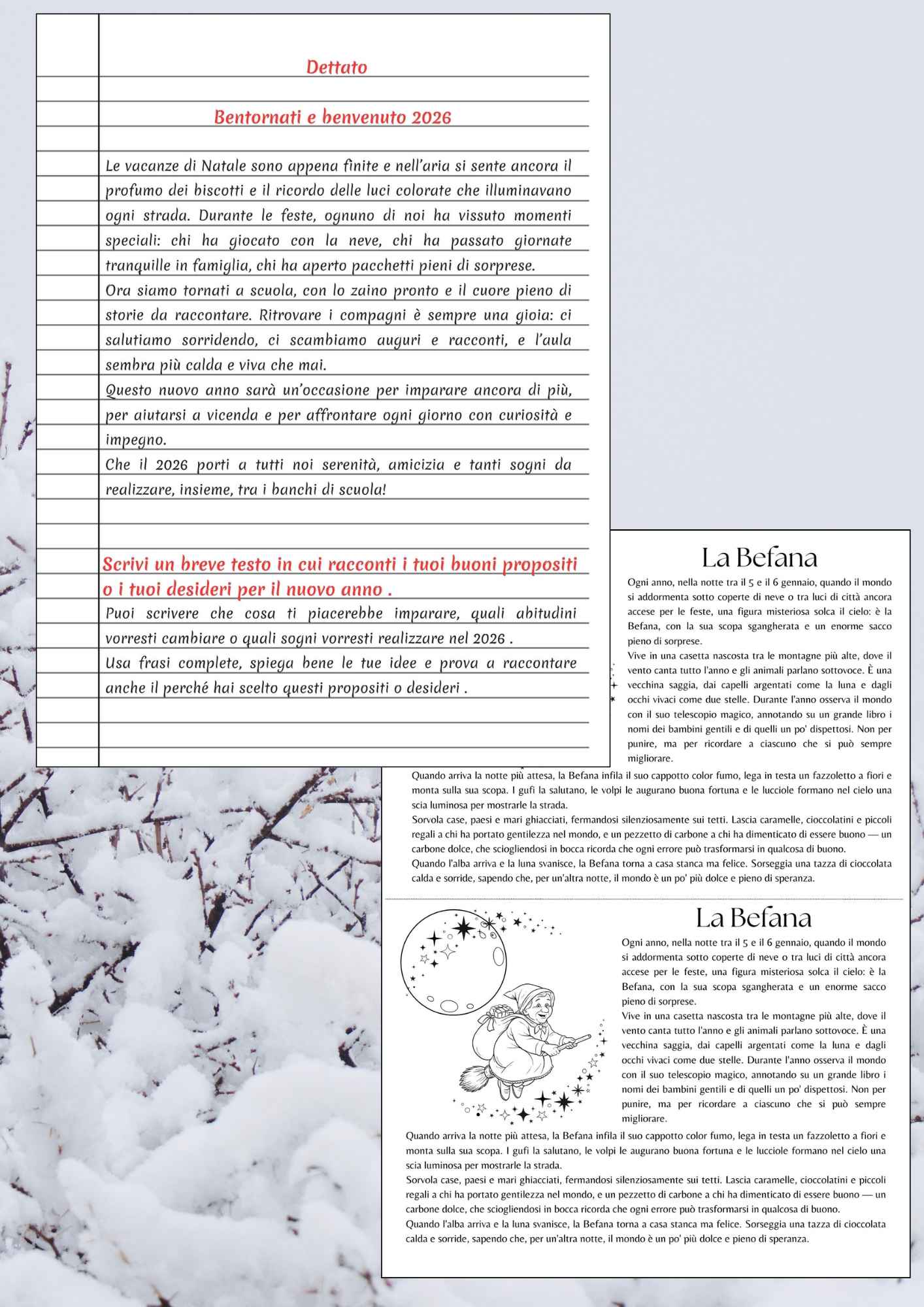 🎯Pacchetto completo di 10 pagine pronte all’uso per il rientro dopo le vacanze per il mese di gennaio! ✨ COSA CONTIENE: Dettato “Bentornati e Benvenuto 2026” Lettura + domande di comprensione su La Befana Aletta decorativa Befana (ritaglia, colora, incolla!) per abbellire le pagine del quaderno Lettura + comprensione sui Giorni della Merla Poesia “Il Gatto d’Inverno” con 4 attività integrate: – Analisi del testo – Domande di comprensione – Struttura poetica – Riflessioni personali Scheda per l’insegnante con proposte di approfondimento 🎯 Italiano, creatività e manualità in un unico file!