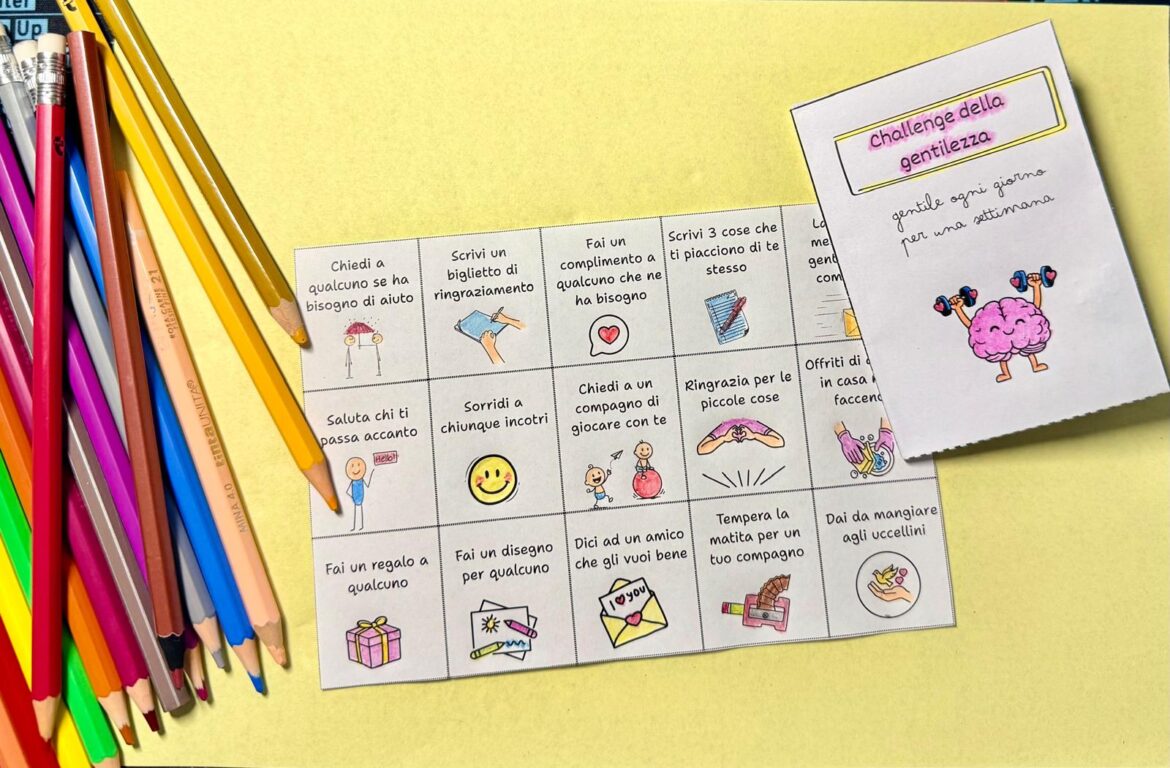 Un mini-libretto ricavato da un foglio A4 sul quale i bambini potranno ogni giorno impegnarsi per essere più gentili verso gli altri, verso la natura e anche verso sé stessi. Il file PDF è formato da: 💖Foglio A4 pronto alla stampa che permette di creare il libretto per la challenge, seguendo le pieghe e un piccolo taglio 💖Foglio A4 pronto alla stampa con degli stickers tra cui gli alunni potranno scegliere. Ogni sticker è una sfida gentile giornaliera da attaccare nell’apposita casella del libretto, uno per ogni giorno della settimana. 💖Istruzioni per la realizzazione del libretto I bambini potranno divertirsi a personalizzare il loro libricino e intanto riflettere sulle loro azioni, impegnandosi in piccole azioni gentili. Un’attività ricca di molti spunti, utile per riflettere e mettere in pratica la gentilezza ogni giorno.