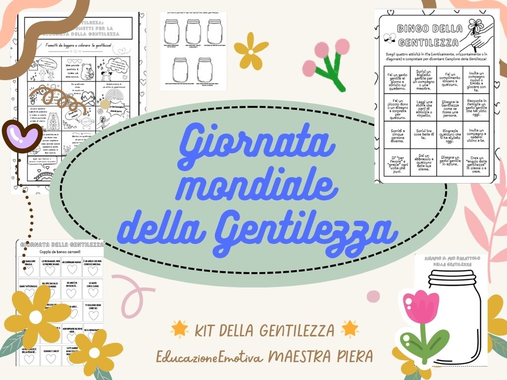 🌟 KIT DELLA GENTILEZZA 🌟 Per celebrare la Giornata della Gentilezza, ho creato un kit speciale con attività divertenti e significative per i bambini. 💛 ✨ Bingo della Gentilezza – Un gioco per riconoscere e condividere gesti gentili nella vita quotidiana. ✨ Il Barattolo della Gentilezza – Un’attività per riempire il barattolo con pensieri e parole gentili verso i compagni. ✨ SuperGentilezza: Storia a Fumetti – frasi che aiutano a riflettere su come la gentilezza renda “super” ogni bambino. ✨ Coppie da banco cercasi! Attività per formare le coppie come compagni di banco.