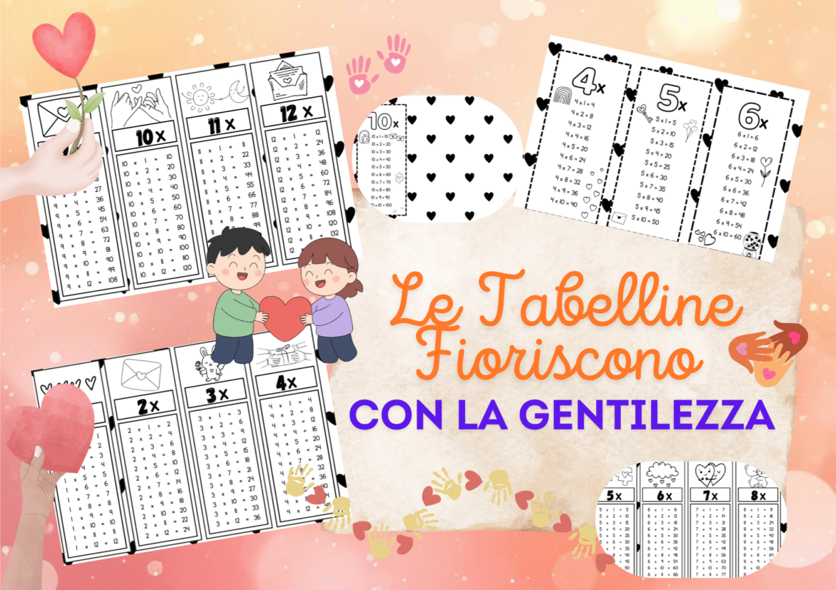 🌸 Le Tabelline Fioriscono con la Gentilezza 🌸 Scopri una raccolta di schede colorate dedicate alle tabelline, ispirate ai valori della gentilezza, dell’amore e dell’amicizia. Ogni pagina unisce il divertimento del calcolo con la bellezza dei cuori e dei fiori, per imparare con il sorriso e con il cuore! 💕✨