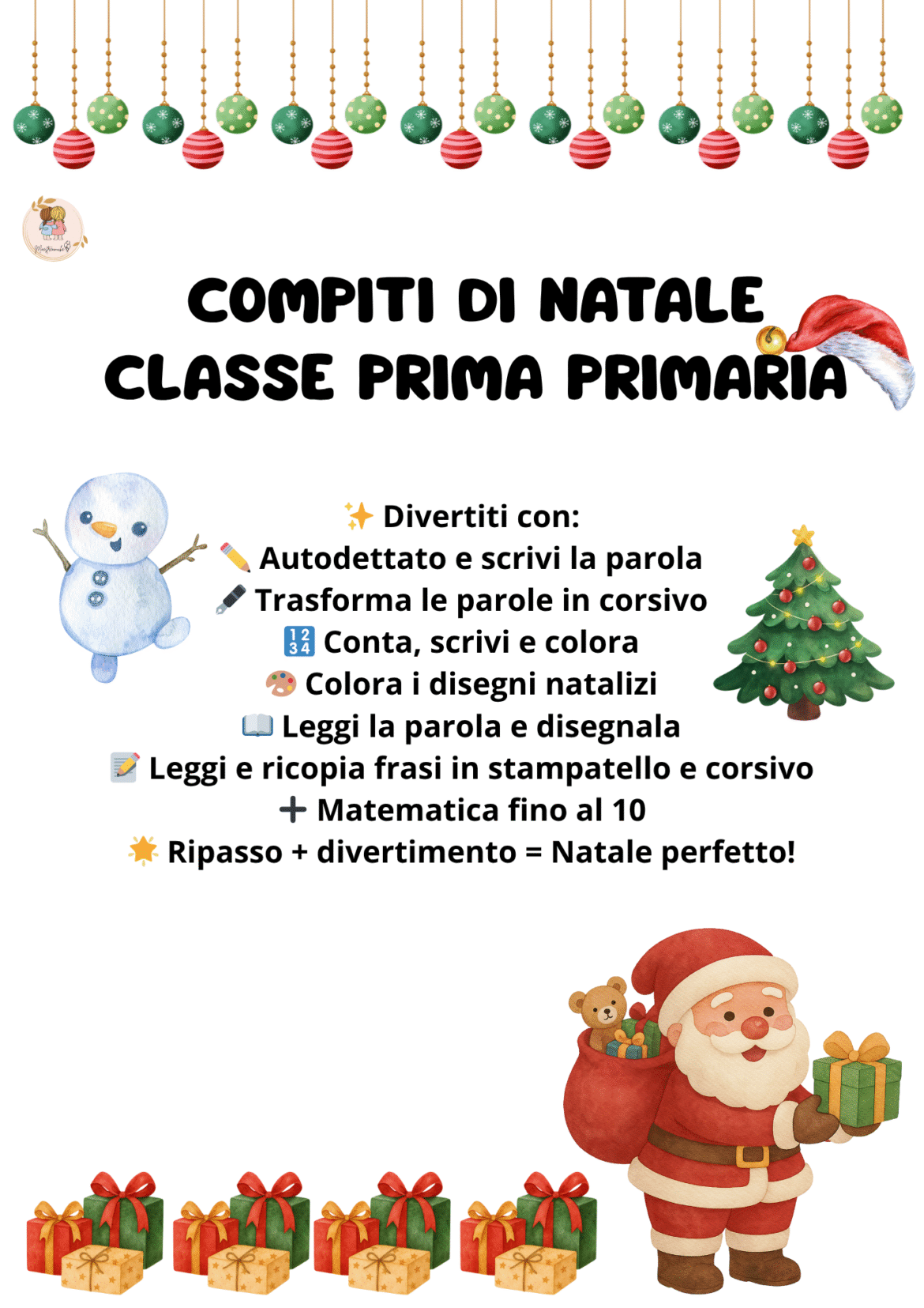 Un pacchetto completo per rendere le vacanze di Natale divertenti e utili! Ideale per la prima primaria, permette ai bambini di esercitarsi in modo creativo tra lettura, scrittura, matematica e arte.