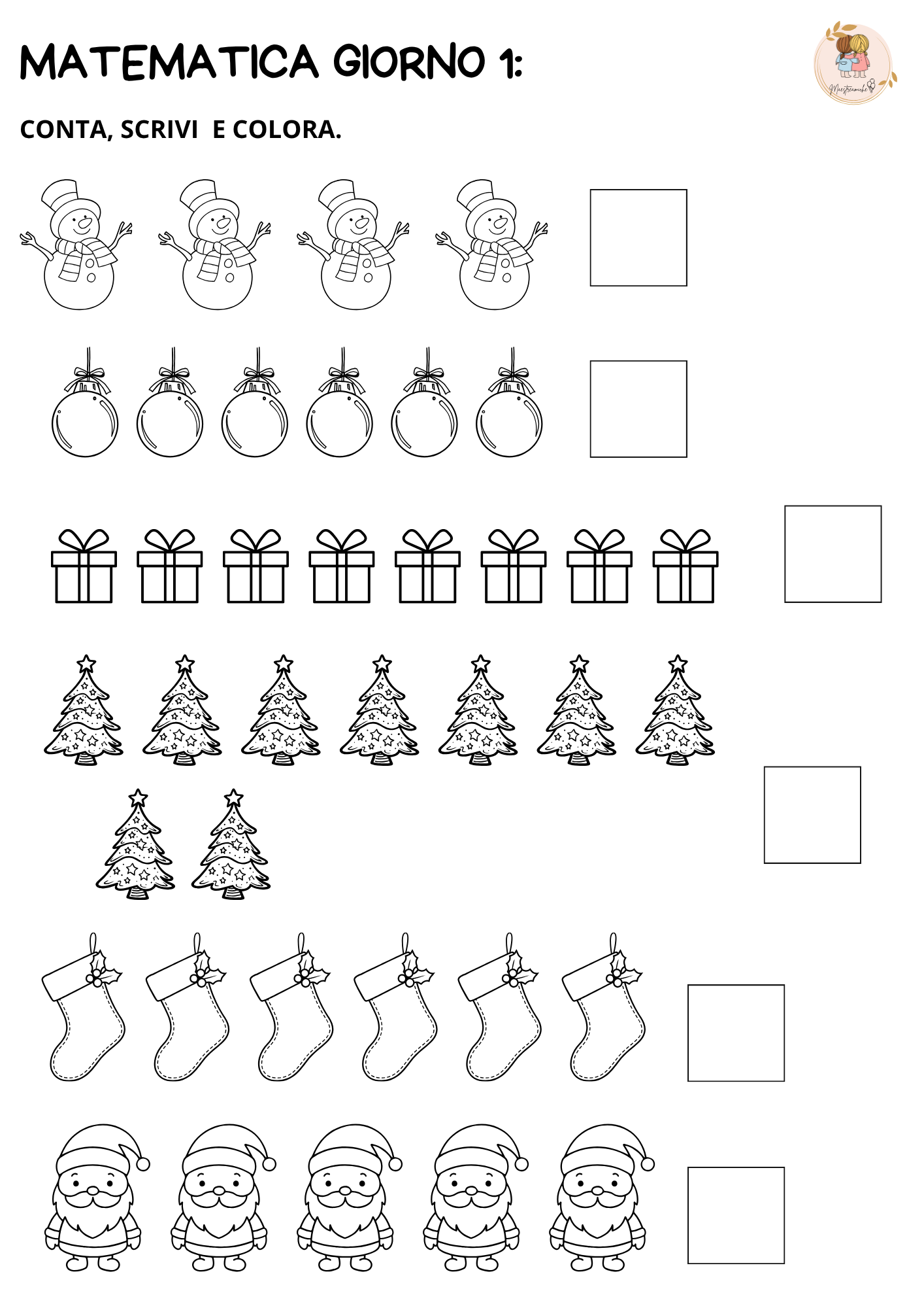 Un pacchetto completo per rendere le vacanze di Natale divertenti e utili! Ideale per la prima primaria, permette ai bambini di esercitarsi in modo creativo tra lettura, scrittura, matematica e arte.