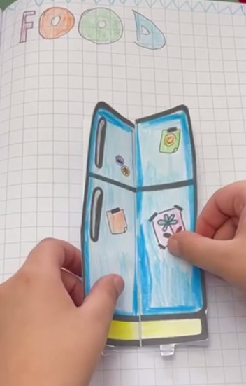 I bambini realizzeranno un piccolo frigorifero apribile da incollare sul quaderno.