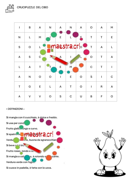 • Un crucipuzzle tematico, per giocare con le parole del cibo e consolidare il vocabolario in modo divertente.