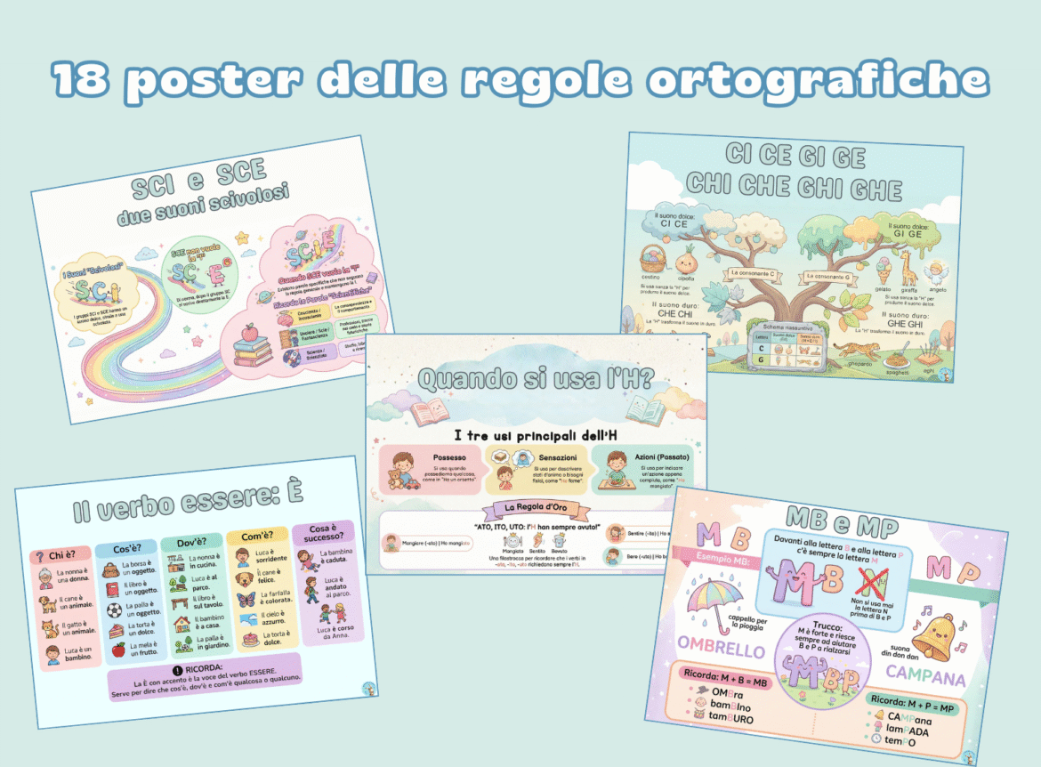 In classe seconda Primaria si affrontano varie regole ortografiche, per cui ho preparato una serie di poster da poter affiggere in aula o da stampare per i quaderni.