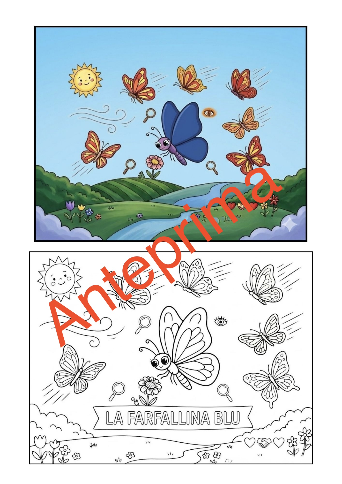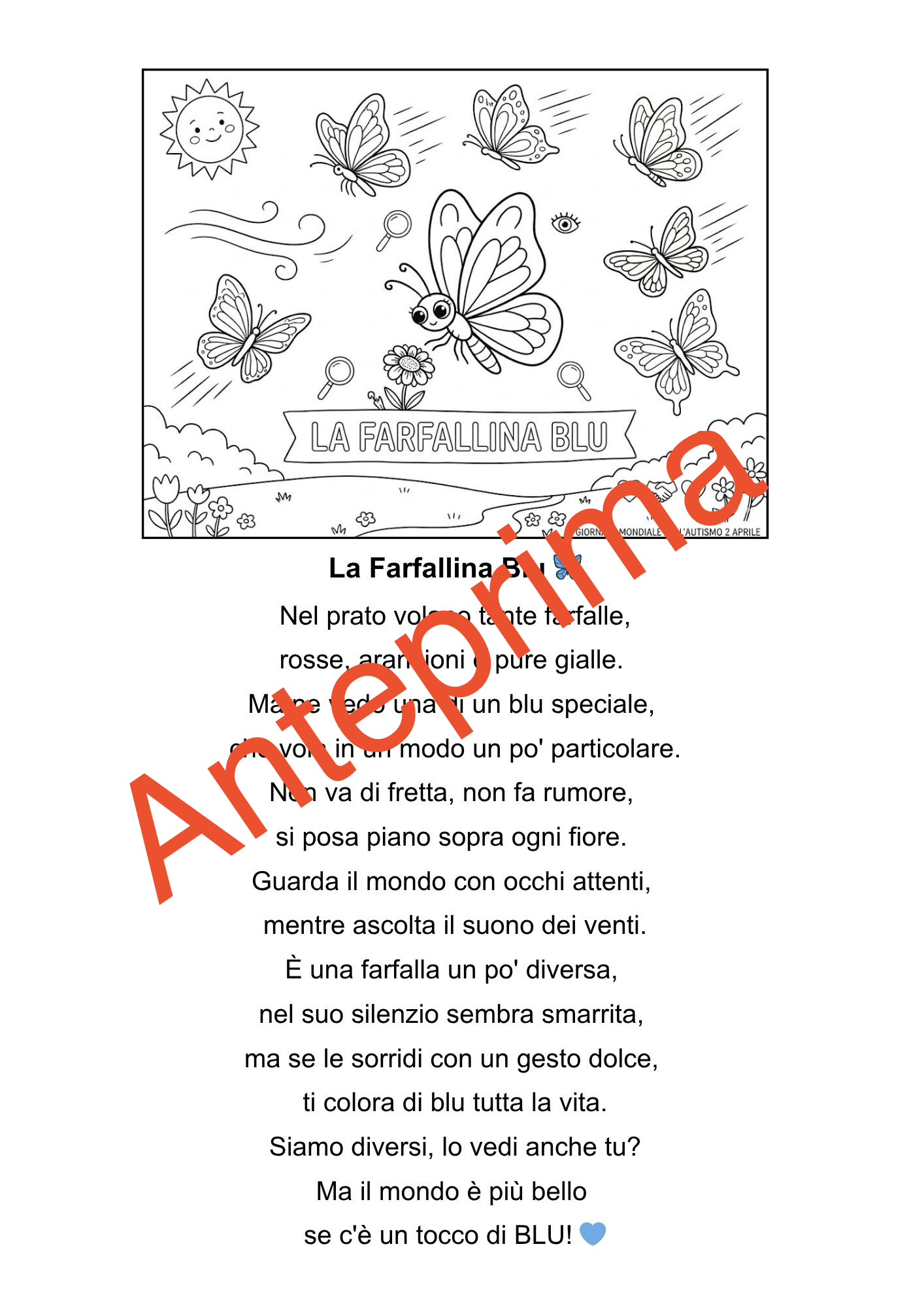 Attraverso la metafora della Farfalla Blu, portiamo i bambini a riflettere su come ogni “volo” sia speciale, anche se diverso da quello delle farfalle gialle o rosse.