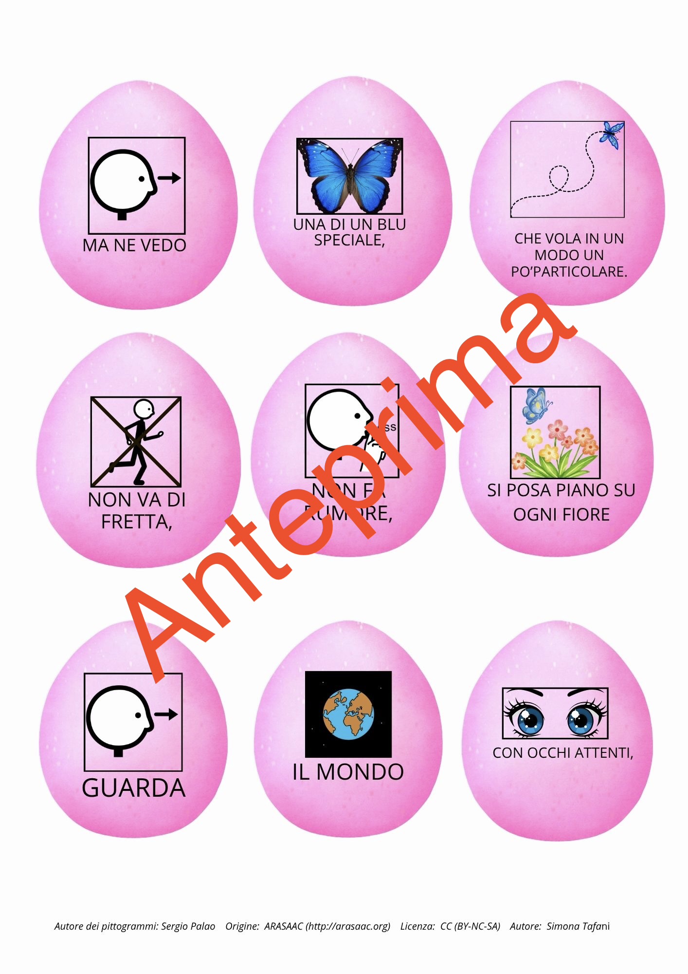 🌈 Cosa trovi nel kit: ✅ il testo poetico della Farfalla Blu in tre versioni: stampato minuscolo, STAMPATELLO MAIUSCOLO e con i pittogrammi ARASAAC (per una didattica davvero inclusiva). ✅ Schede di riflessione e comprensione per stimolare l’empatia. ✅ La “Scheda della Gentilezza” e disegni da colorare. ✅ Una traccia musicale dedicata per creare un’atmosfera magica in aula. ✅ Il Gioco della Caccia alle Uova: un’attività dinamica per ricostruire la poesia insieme e creare un cartellone di classe! 🥚🦋