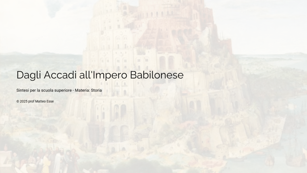 Lezione pronta sull’evoluzione della Mesopotamia: dagli Accadi di Sargon al primo Impero Babilonese.