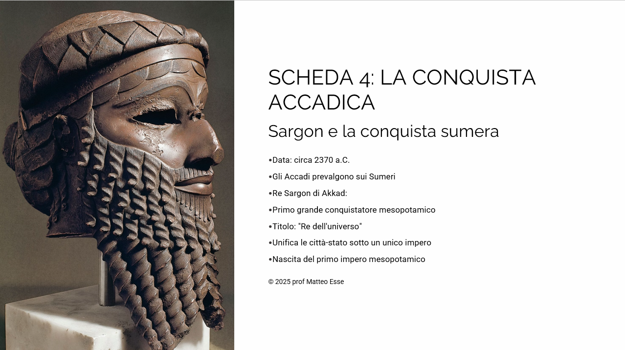 Lezione pronta sull’evoluzione della Mesopotamia: dagli Accadi di Sargon al primo Impero Babilonese.