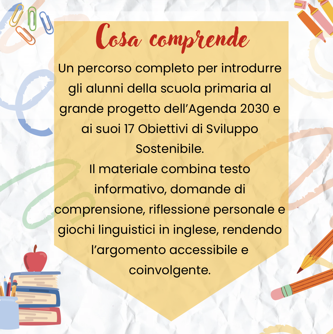 Un percorso completo per introdurre gli alunni della scuola primaria al grande progetto dell’Agenda 2030 e ai suoi 17 Obiettivi di Sviluppo Sostenibile.