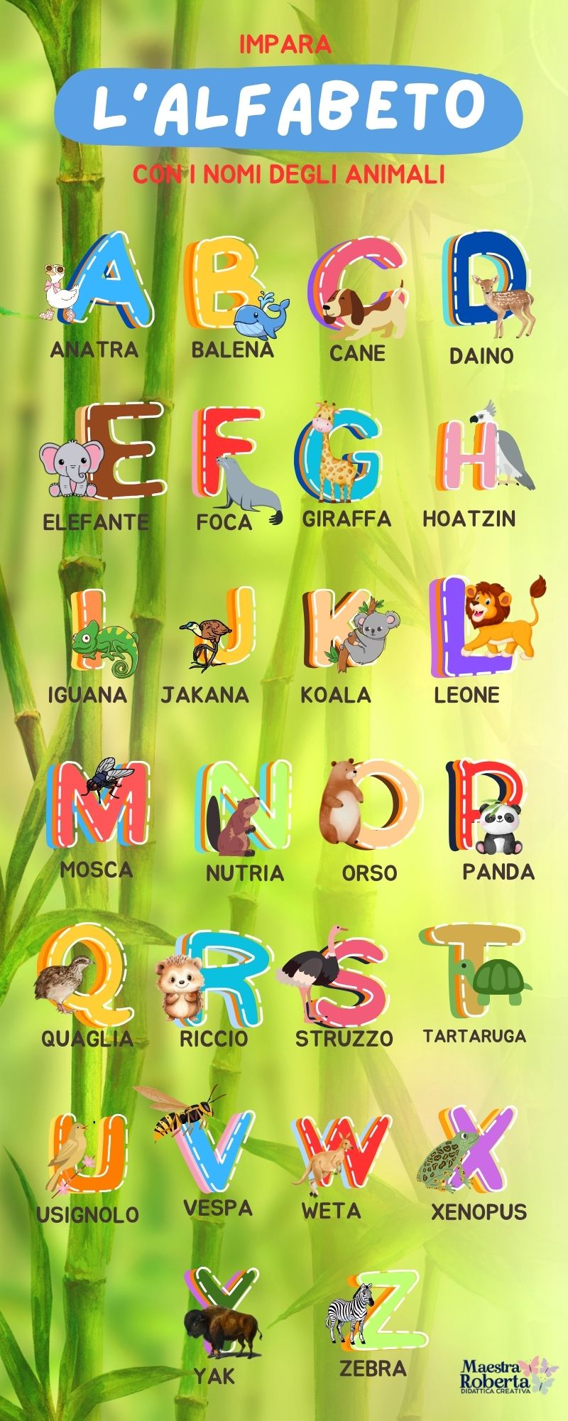 L’infografica “Alfabeto degli Animali” nasce come supporto visivo strategico per facilitare il recupero spontaneo dei grafemi e l’associazione fonema-grafema. La scelta della plastificazione non è solo estetica: rende lo strumento durevole, igienizzabile e, soprattutto, interattivo.