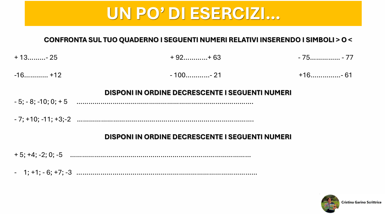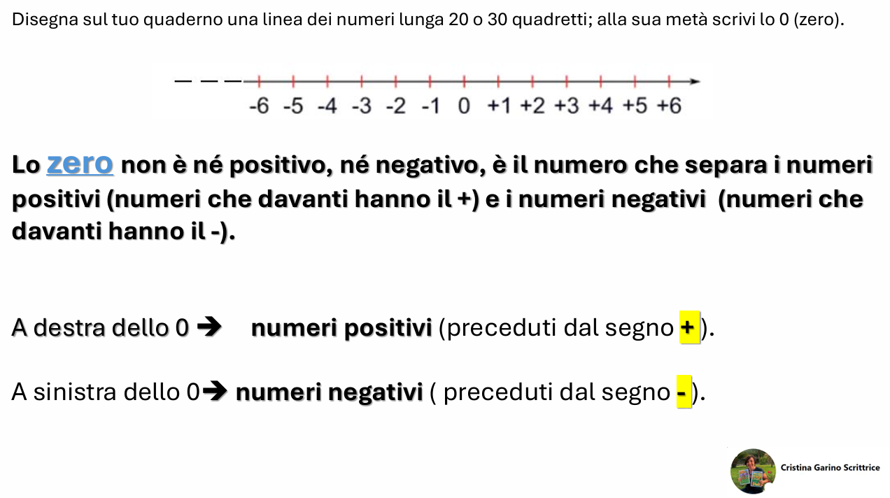 – Spiegazione dei numeri relativi (cosa sono, il loro utilizzo, il confronto e le addizioni)
