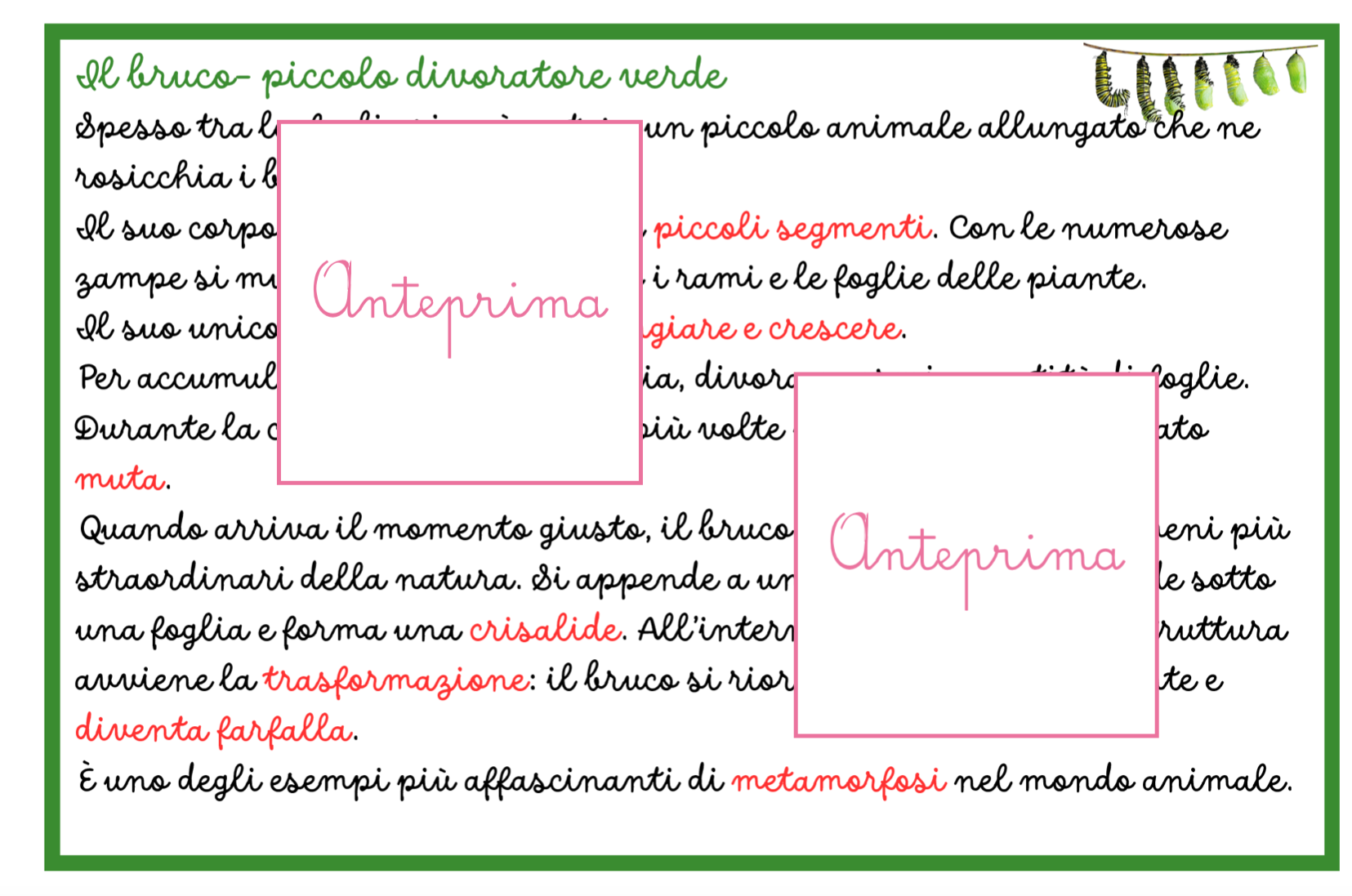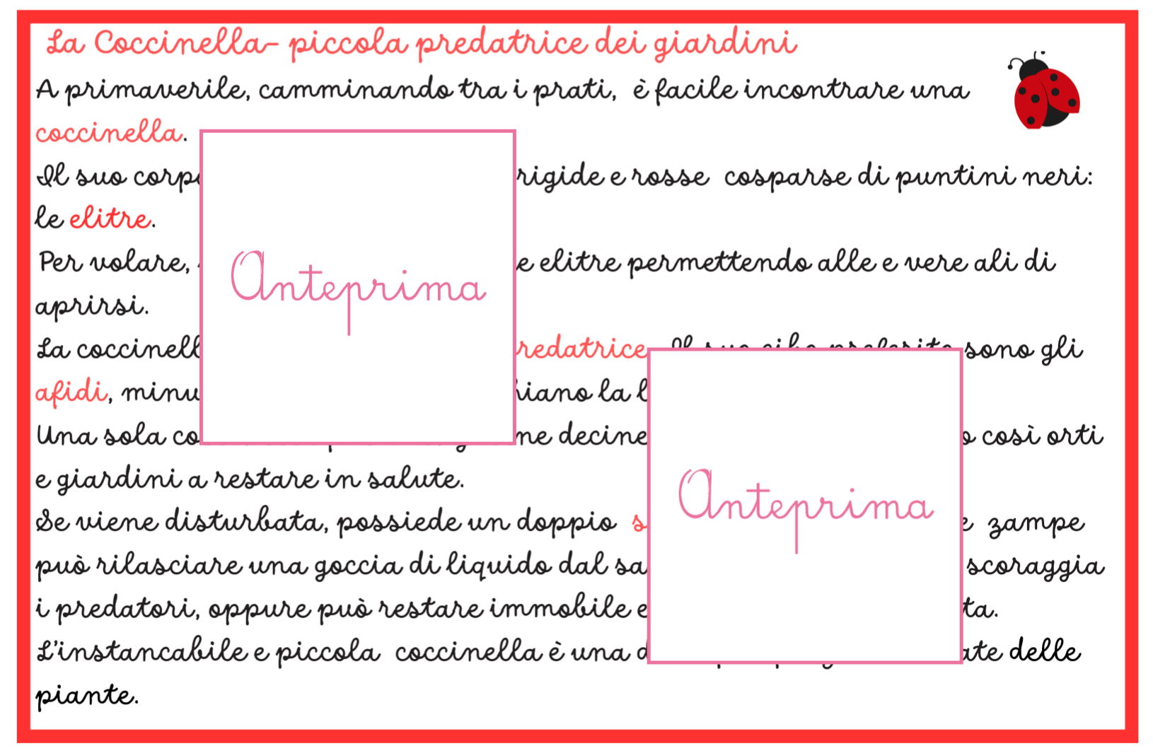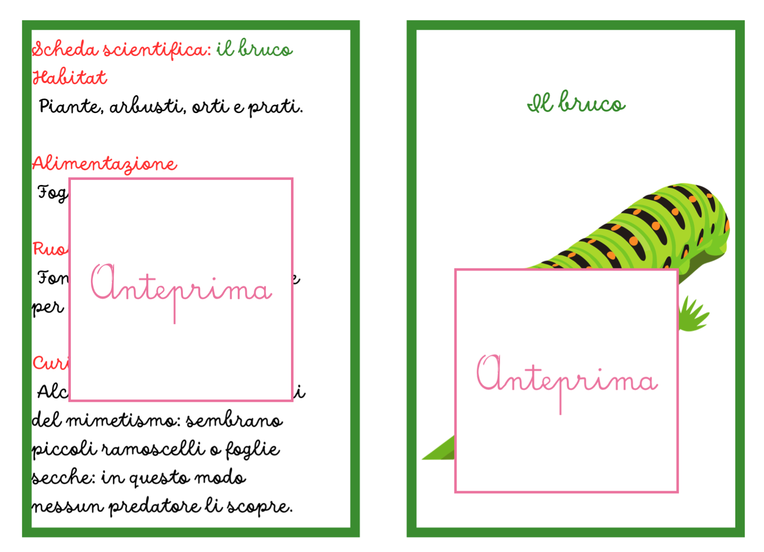 🌸 ANIMALI DELLA PRIMAVERA – CARTE SCIENTIFICHE MONTESSORI Scopri gli animali della primavera con un materiale scientifico, narrativo e manipolativo pensato per avvicinare i bambini alla natura. Con 20 carte Montessori e attività di classificazione e osservazione, i bambini imparano a conoscere gli animali che popolano prati, giardini e stagni, sviluppando curiosità scientifica e capacità di osservazione. Il materiale unisce narrazione, scienza e attività concrete, permettendo ai bambini di esplorare il mondo naturale in modo attivo e coinvolgente. 🐞 COSA TROVI NEL MATERIALE 📚 20 carte animali in tre parti immagine illustrata narrazione scientifica semplice e chiara scheda con informazioni essenziali 🔬 Ogni scheda include • habitat • alimentazione • ruolo ecologico • curiosità scientifiche 🧩 Materiali per le attività supporti stampabili per la classificazione supporti per l’associazione habitat carte per il gioco investigativo 🌿 ATTIVITÀ DIDATTICHE Il materiale propone tre attività progressive. 🔎 1. Classificazione degli animali I bambini osservano le carte e classificano gli animali nelle principali categorie zoologiche (insetti, uccelli, mammiferi, anfibi…). L’attività sviluppa pensiero logico e capacità di confronto. 🌾 2. Trova l’habitat I bambini leggono le informazioni e associano ogni animale al suo ambiente naturale: • prato • giardino • siepi • acqua L’obiettivo è comprendere il legame tra animale e ambiente. 🕵️ 3. Detective della natura Un gioco di osservazione e deduzione: attraverso indizi e caratteristiche, i bambini devono individuare l’animale corretto tra le carte. 🎯 OBIETTIVI EDUCATIVI Il materiale aiuta a sviluppare: • conoscenza degli animali della primavera • comprensione del concetto di habitat • prime competenze di classificazione scientifica • osservazione e pensiero logico • sensibilità verso natura ed ecosistemi ✂️ PREPARAZIONE SEMPLICE Il materiale è progettato per essere facile e veloce da preparare. Basta: • stampare le carte • stampare i supporti per le attività • ritagliare (eventualmente plastificare) Le attività possono essere svolte su tavolo o tappeto, individualmente o in piccolo gruppo. 👩🏫 IDEALE PER • scuola dell’infanzia • classe prima e seconda primaria • attività Montessori • laboratori di scienze • educazione ambientale • homeschooling 🧠 COMPETENZE SVILUPPATE • osservazione scientifica • classificazione • linguaggio scientifico di base • pensiero logico • consapevolezza ecologica 💡 Un materiale che unisce scienza, narrazione e gioco per far scoprire ai bambini le piccole meraviglie della natura. Stampabile, pronto all’uso, 31pagine