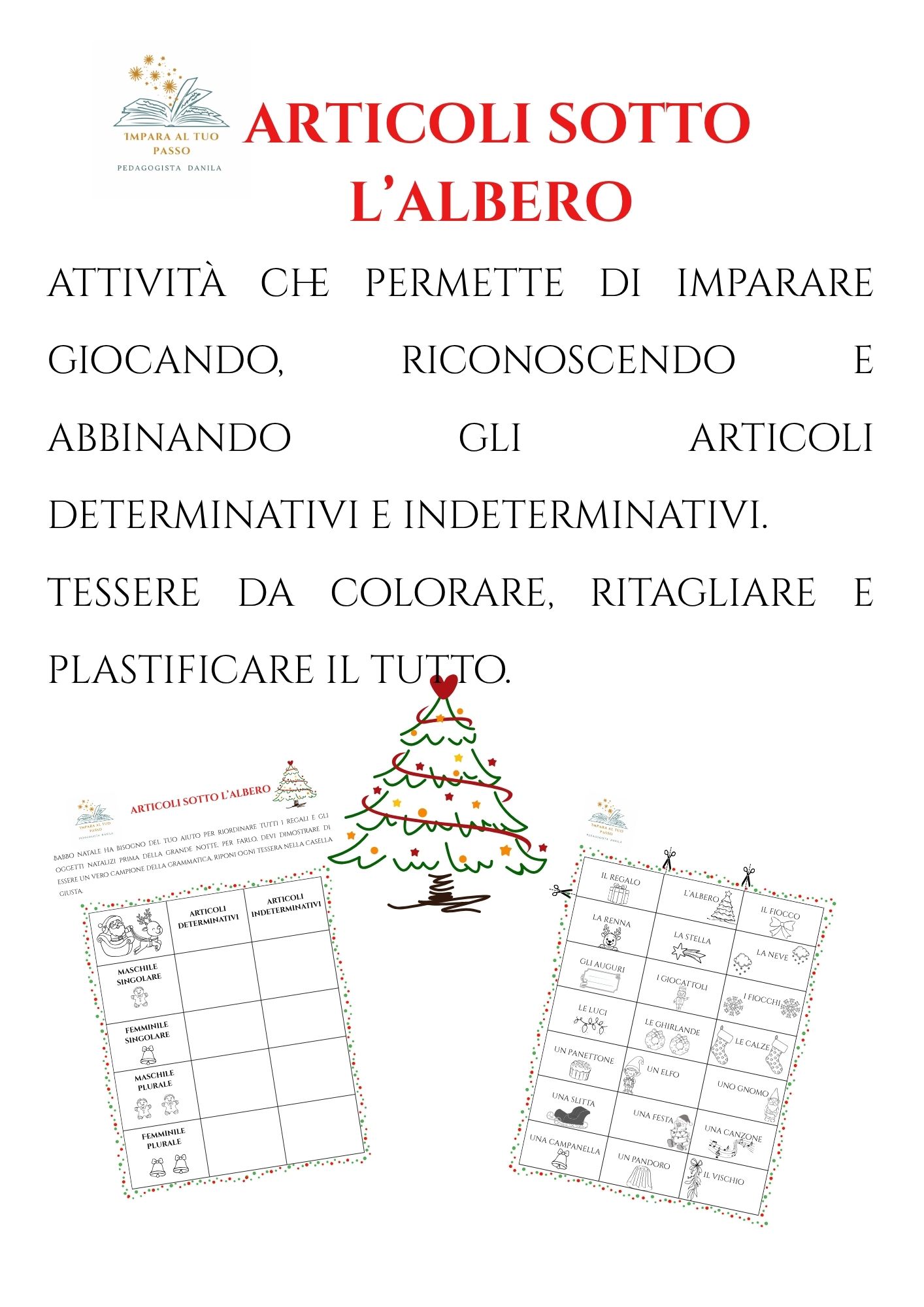 Gioco a tema Natale per consolidare l’apprendimento degli articoli determinativi e indeterminativi.