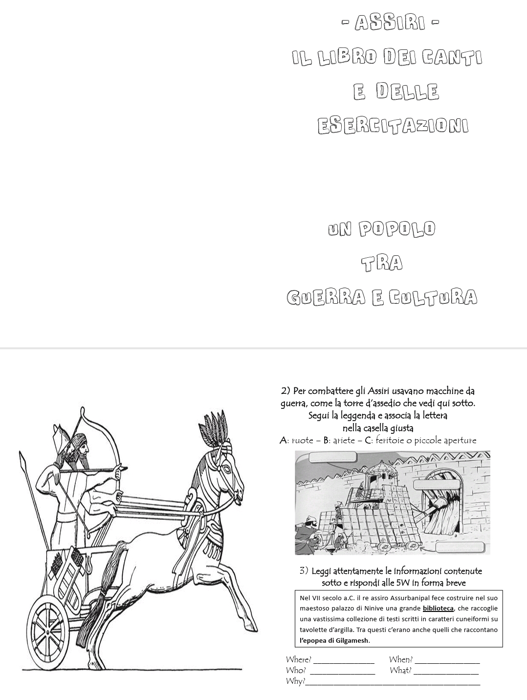 Nella cartella compressa che trovate in allegato troverete un libricino con due riassunti in rima di ciò che gli Assiri hanno rappresentato, non solo per le ingegnose macchine belliche ma anche per quel lato estetico e culturale che portò, grazie al genio di Assurbanipal, alla costruzione della più grande biblioteca al mondo: la Biblioteca di Ninive. Nel fascino di un popolo che ormai non c’è più, nella polvere che porta memorie di guerre e battaglie ma anche resti di tavolette, statue e meravigliosi edifici, conosciamo questo popolo che ha lasciato il suo segno nella cammino della storia.