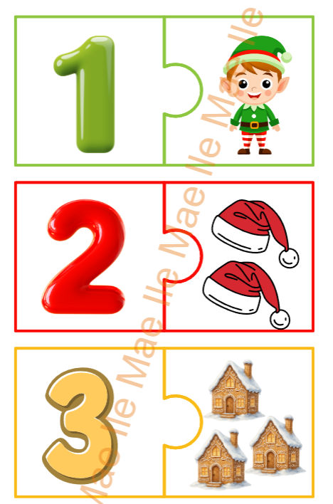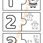 La prima attività è un puzzle dei numeri con immagini natalizie, disponibile sia in bianco e nero che a colori: i bambini ricompongono le immagini ordinando i numeri da 1 a 10.