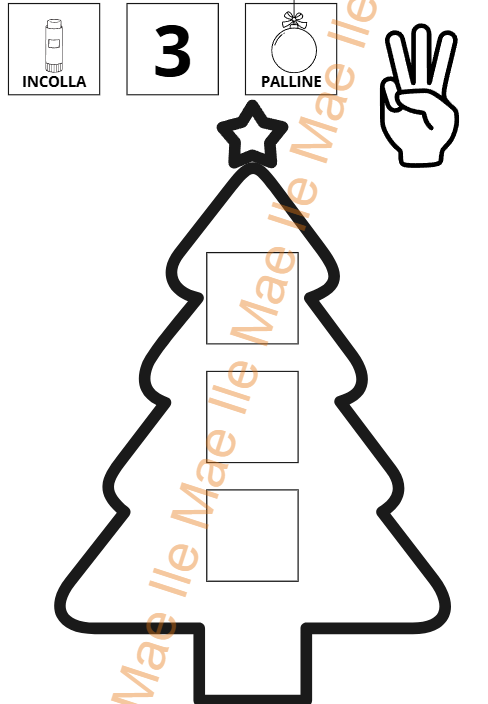 La seconda è un albero di Natale conta-palline, in cui i bambini incollano il numero corretto di palline sull’albero, imparando ad associare numero e quantità.