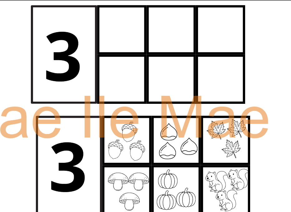 Schede con griglie numerate da 1 a 10: i bambini ritagliano simboli autunnali e li incollano nelle griglie, rispettando la quantità indicata da ciascun numero. Attività utile per esercitare il conteggio e la motricità fine.