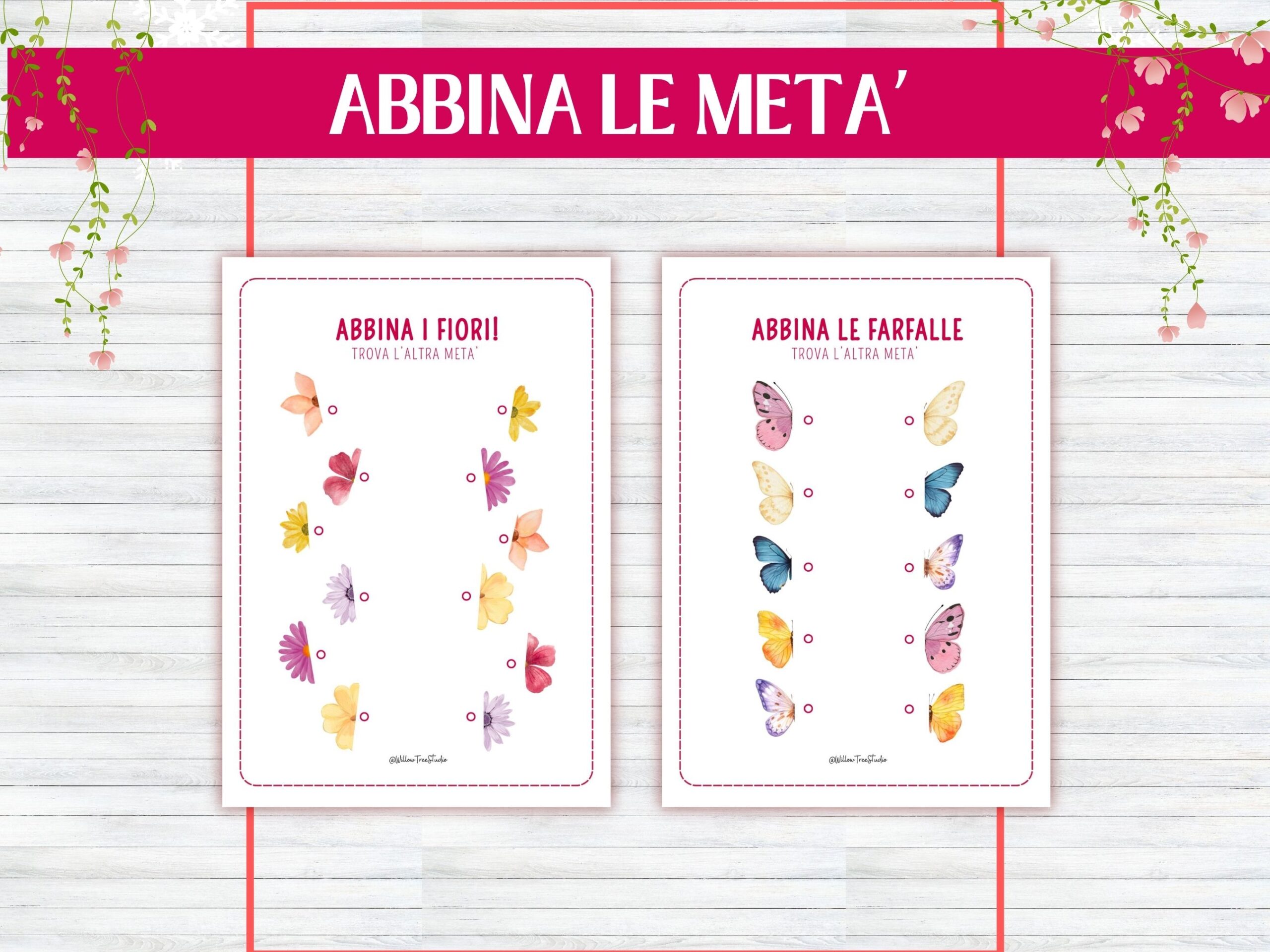– 2 Abbinamenti di metà – Abbina le metà di fiori e farfalle