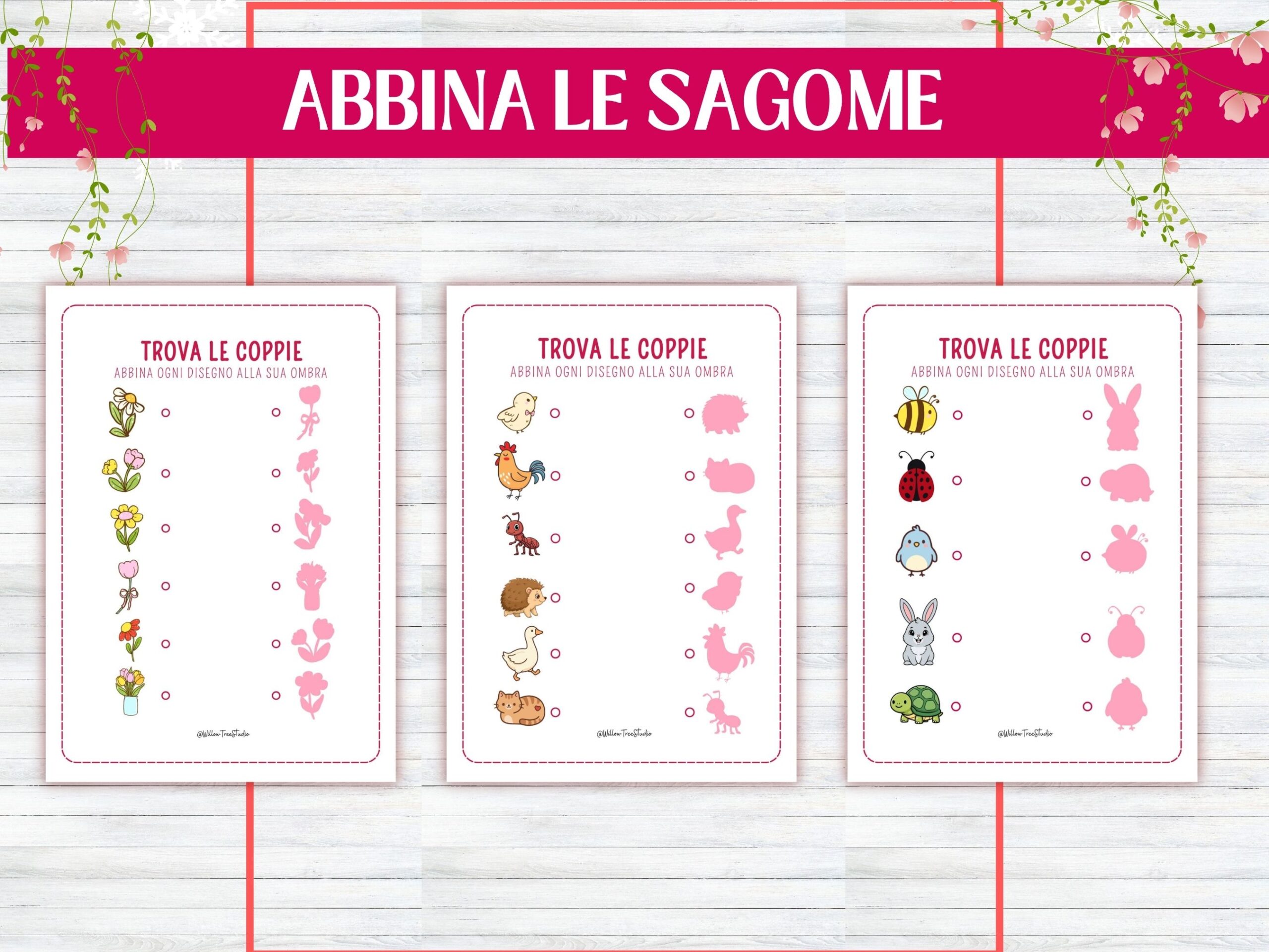 – 3 Abbinamento delle ombre – Abbina oggetti e animali primaverili alle loro sagome