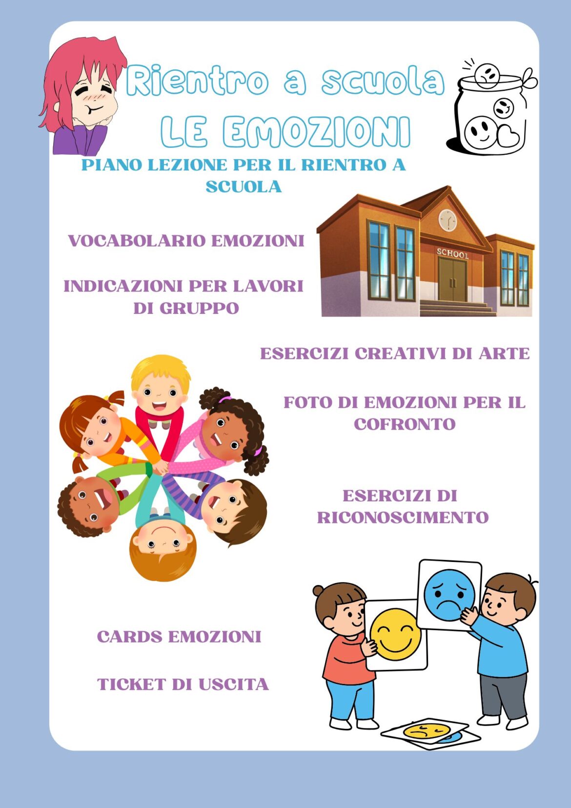 Organizzate un gioco del “Mimo delle Emozioni” dove i bambini mimano diverse emozioni Create una storia collettiva sul primo giorno di scuola
