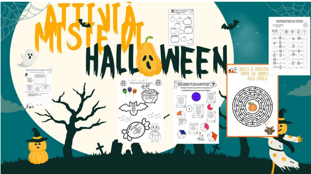 31 schede didattiche per tutte le classi della scuola primaria con attività di italiano, coding, matematica e lingua inglese a tema Halloween. Ci sono schede sia a colori sia in bianco e nero per tutte le diverse attività da proporre in classe