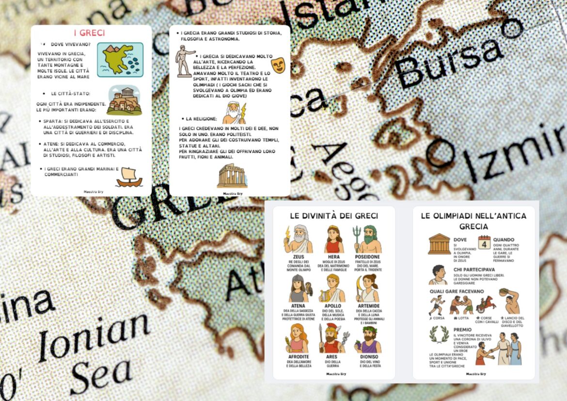 4 pagine riassuntive e semplificate in stampato maiuscolo sulla civiltà dei Greci