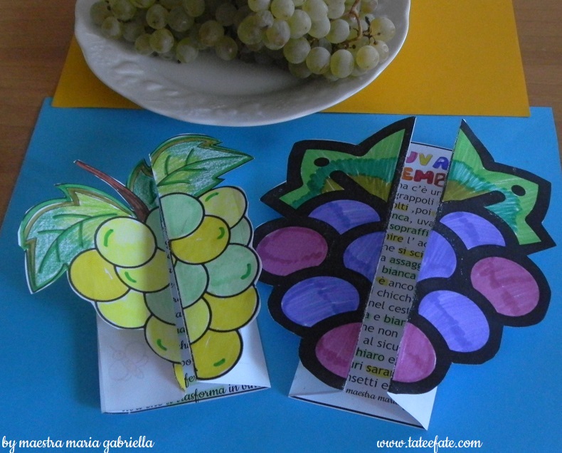due schede didattiche pop up con testo poetico in rima in soggetto grappolo di uva