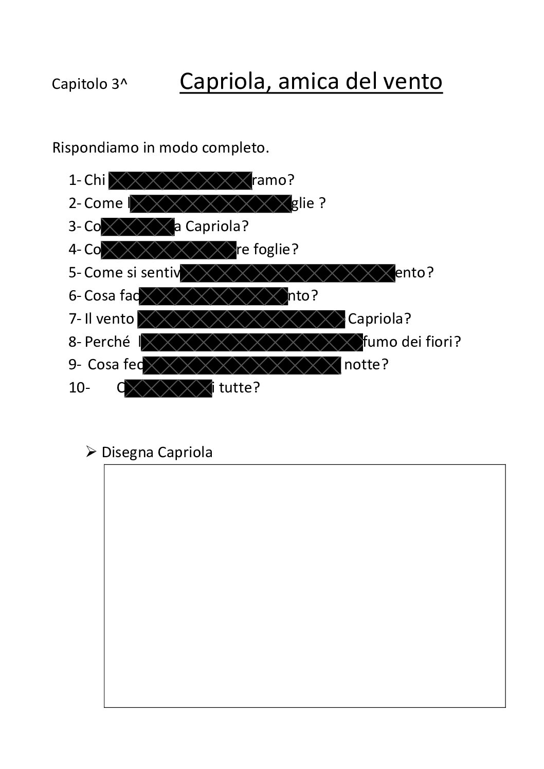 laboratorio di lettura approfondita, attività per la comprensione del testo letto: domande che prevedono risposte aperte, riassunto testo cloze, esercizi vari, aggiuntivi, illustrazione.