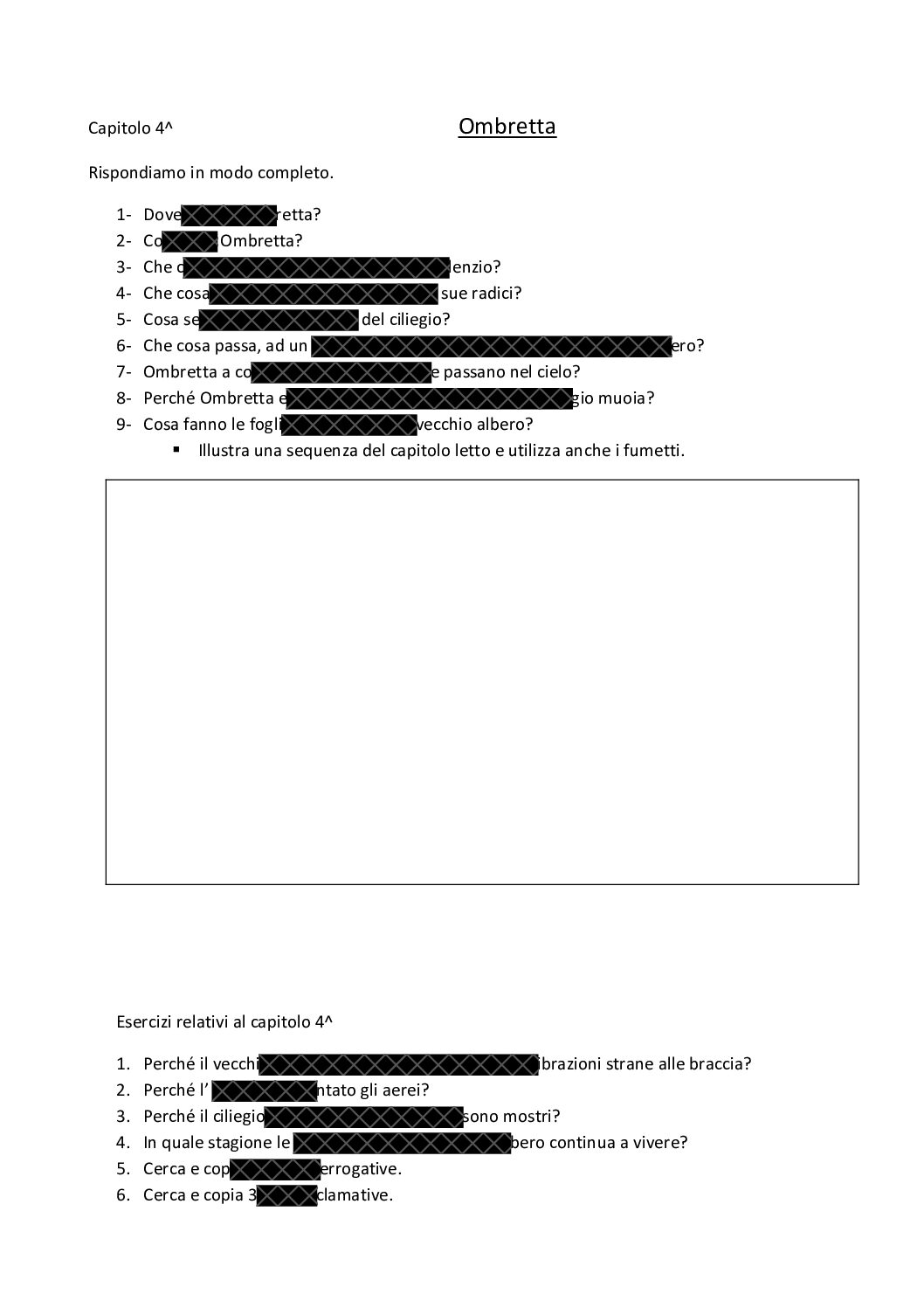 laboratorio di lettura approfondita, attività per la comprensione del testo letto: domande che prevedono risposte aperte, riassunto testo cloze, esercizi vari, aggiuntivi illustrazione.