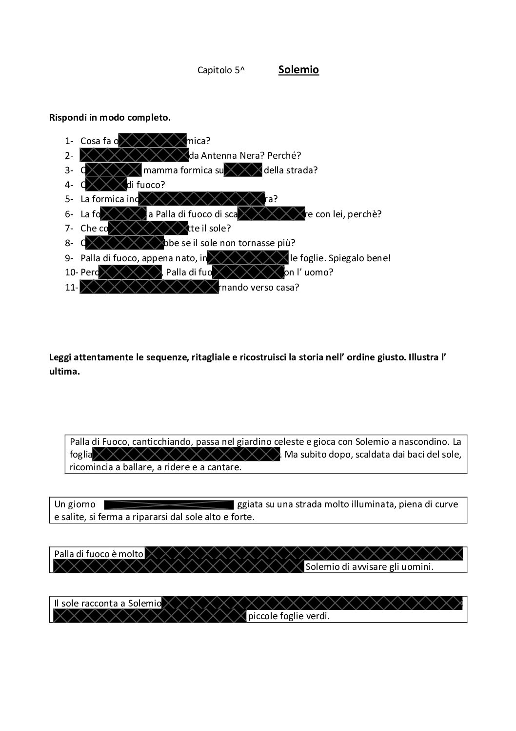 attività di comprensione del testo letto attraverso domande che prevedono risposte aperte, riordino di sequenze narrative.