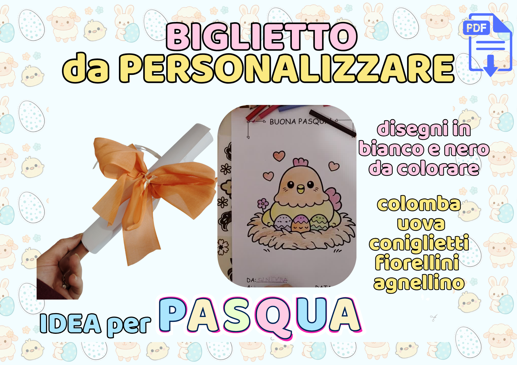 | Note aggiuntive per i genitori | Questi biglietti sono pensati per incoraggiare i bambini a esprimere affetto e creatività attraverso un piccolo gesto fatto a mano. Colorare, scrivere e donare un biglietto aiuta a sviluppare manualità, attenzione e valore emotivo del “fare per qualcuno”. Un’attività semplice, ma significativa, per rendere la Pasqua ancora più speciale 🐣✨ |