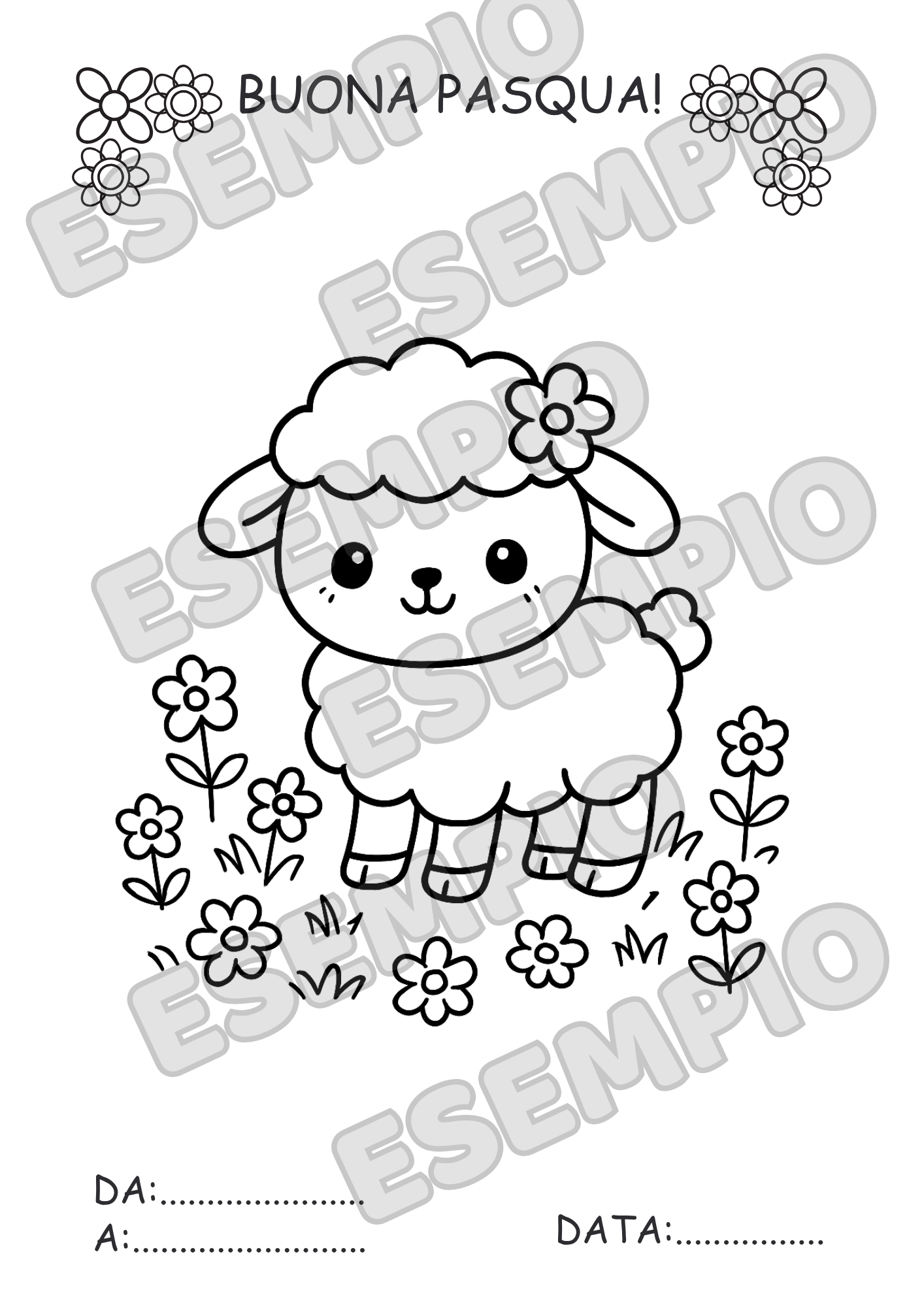 All’interno troverai dolci illustrazioni a tema pasquale — coniglietti, agnellini, colombe e altri teneri personaggi — pronte per essere colorate, personalizzate e trasformate in un pensiero speciale.