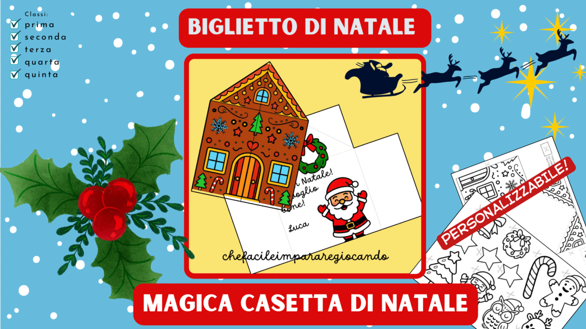 🎄 Biglietto di Natale a forma di casetta di pan di zenzero – PDF stampabile 🏠✨