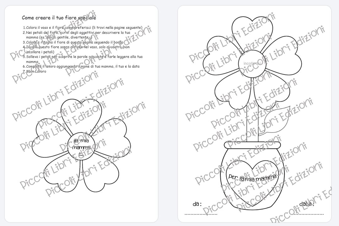 L’attività è pensata per essere facile e accessibile anche ai più piccoli: basta colorare, ritagliare e incollare per creare un regalo unico e fatto con il cuore.