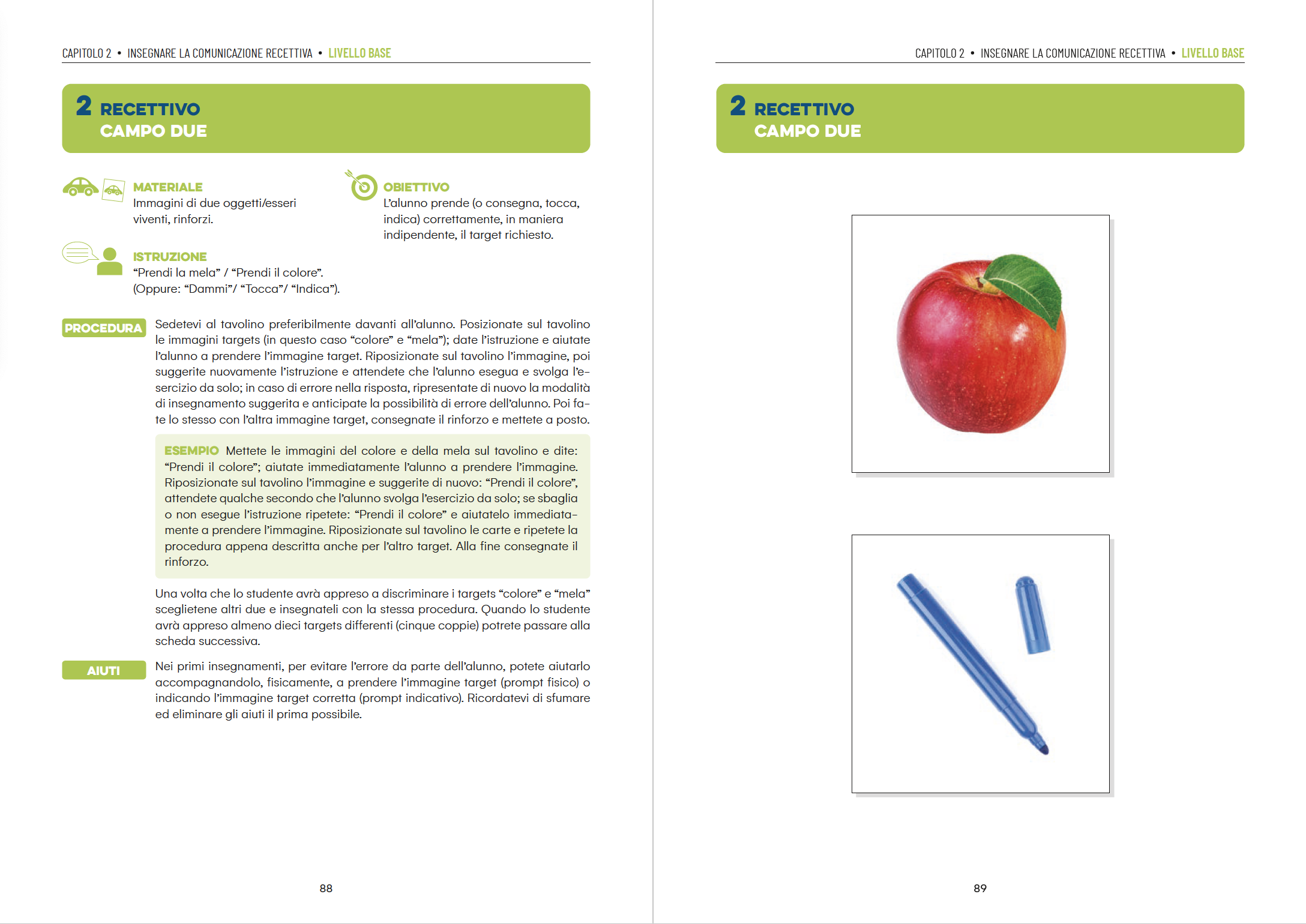 Tutte le schede e i materiali presenti nel manuale sono stati pensati per essere utilizzati come strumento di lavoro che permetteranno di insegnare, in qualsiasi contesto strutturato si voglia, le abilità necessarie all’acquisizione del linguaggio verbale o non verbale.