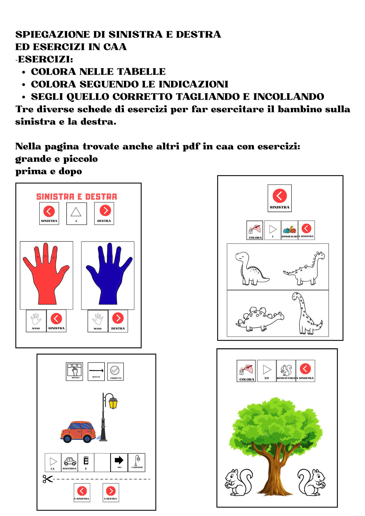 Tre diverse schede di esercizi per far esercitare il bambino sulla sinistra e la destra.