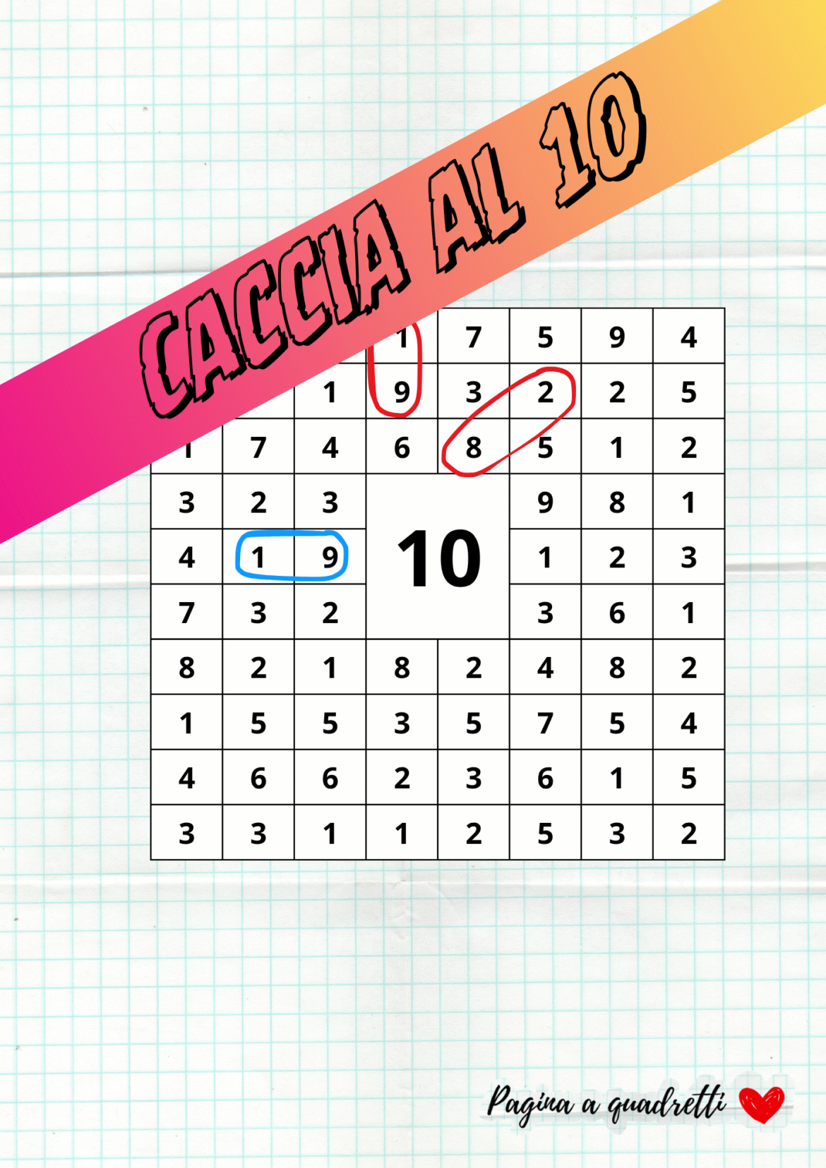 - Fine del gioco: La partita termina quando non è più possibile trovare altre combinazioni di 10 sulla griglia. Vince chi ha cerchiato il maggior numero di combinazioni valide.