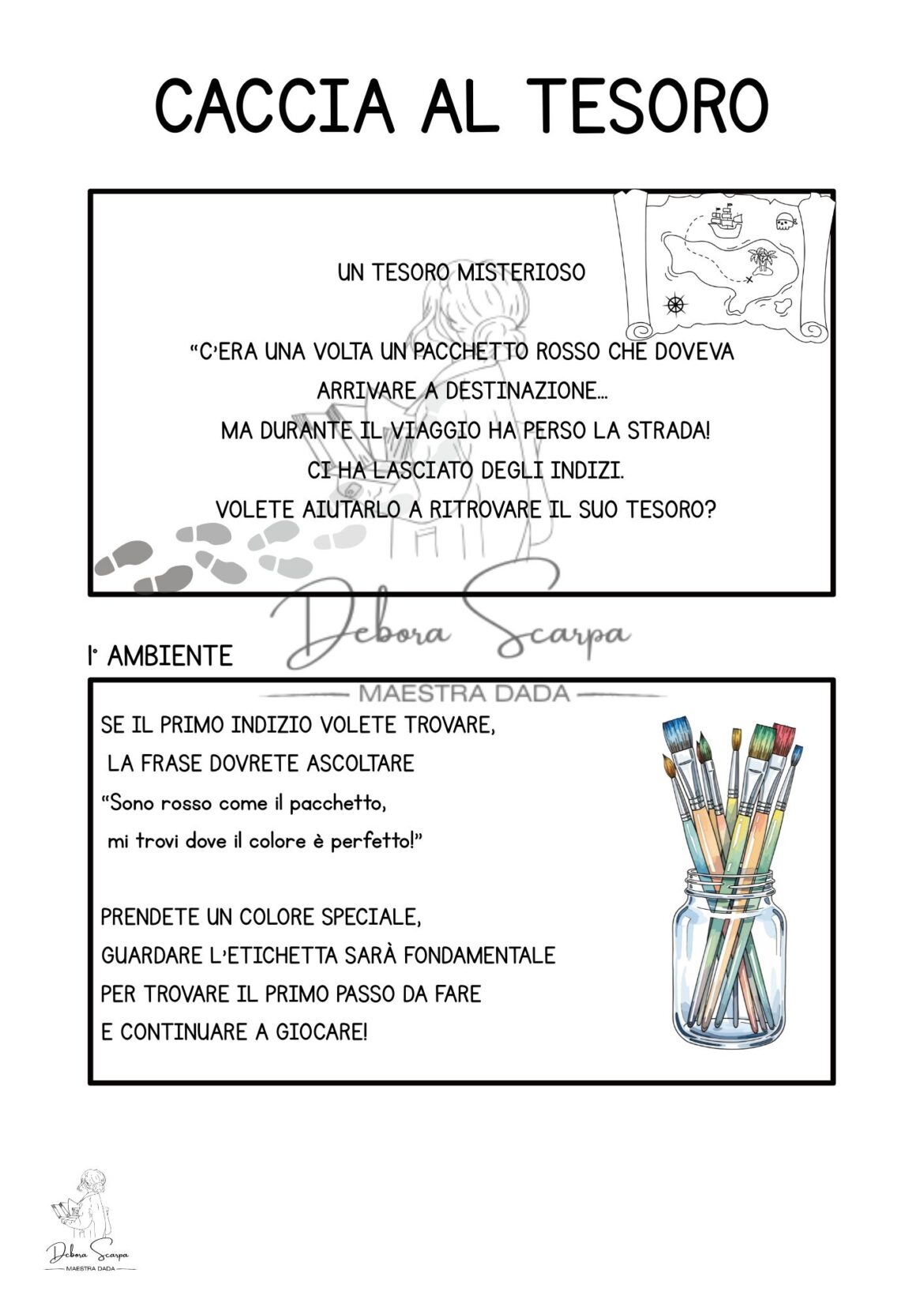 CIACCIA AL TESORO PER LA CLASSE PRIMA ISPIRATA ALLA STORIA DEL PACCHETTO ROSSO
