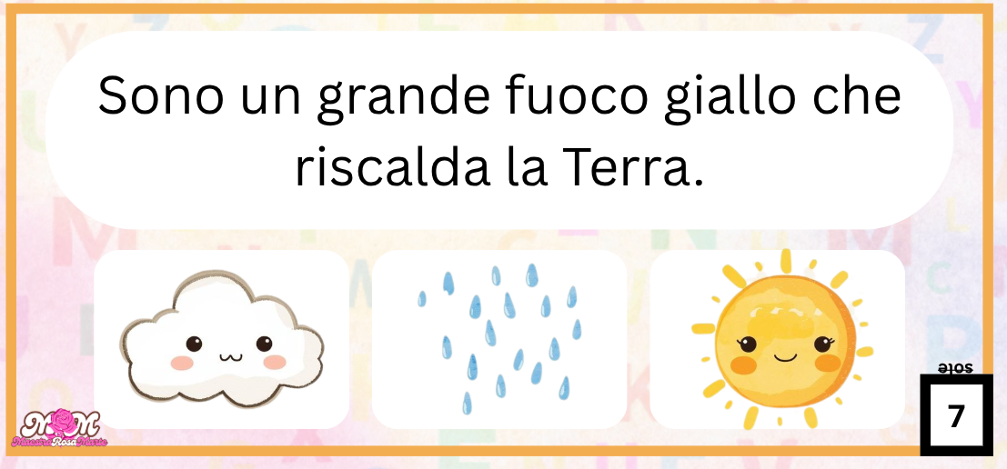 Interagisci e Impara: 🤏 Per rendere l’apprendimento ancora più concreto e divertente, i bambini usano piccoli oggetti (come mollette, bottoni o sassolini) per “pinzare” l’immagine scelta. 📌 Questo trasforma la comprensione in un’azione motoria coinvolgente! 🙌
