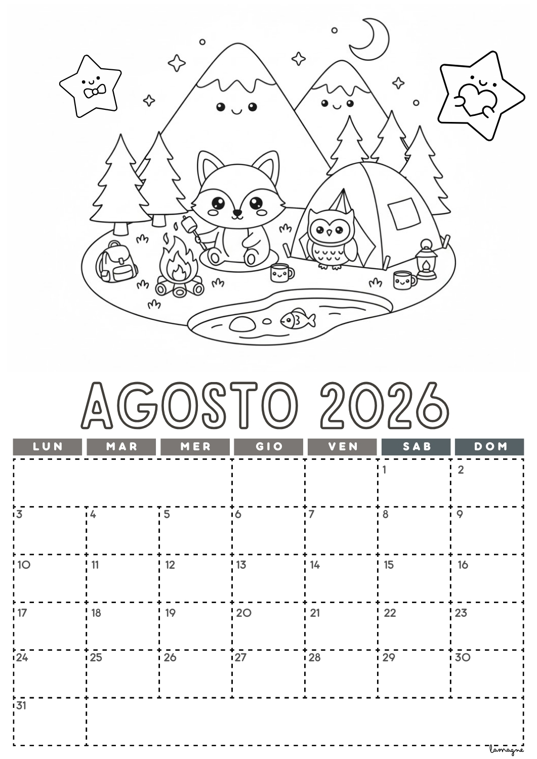 12 tavole mensili (da gennaio a dicembre 2026) in formato PDF;