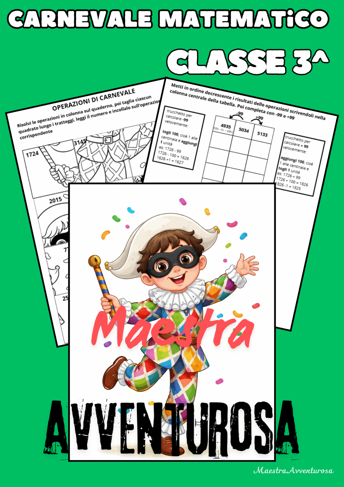 Porta la magia del Carnevale in classe con questo materiale coinvolgente! I tuoi alunni e le tue alunne di classe terza si divertiranno un mondo mentre ripassano e consolidano importanti concetti matematici.