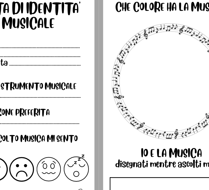 Carta di identità dove ogni bambino descrive se stesso in rapporto alla musica che ama, che ascolta, alle emozioni che prova.