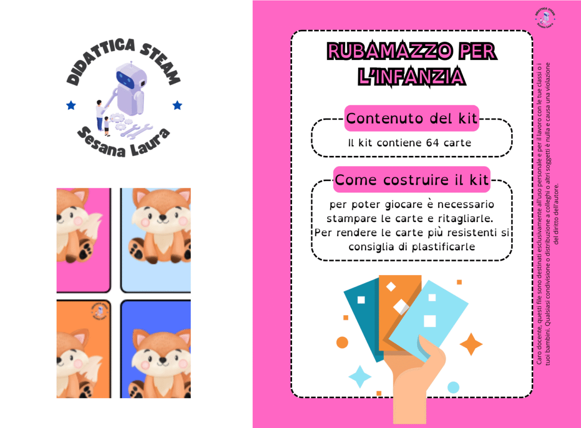 Il kit contiene il file stampabile per poter realizzare un mazzo da 64 carte per il gioco rubamazzo.