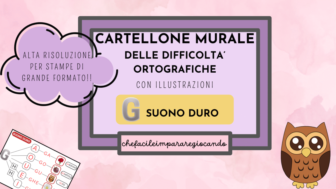 Progettato per offrire un supporto visivo immediato e intuitivo, aiuta i bambini a riconoscere, comprendere e applicare correttamente la regola ortografica legata al suono duro della lettera G.