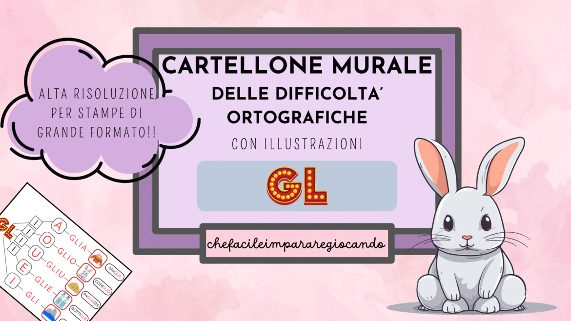 Facilita l’apprendimento delle regole ortografiche con questo cartello didattico dedicato al suono “GL”, pensato per aiutare i bambini a riconoscere e utilizzare correttamente questo suono nella lingua italiana.