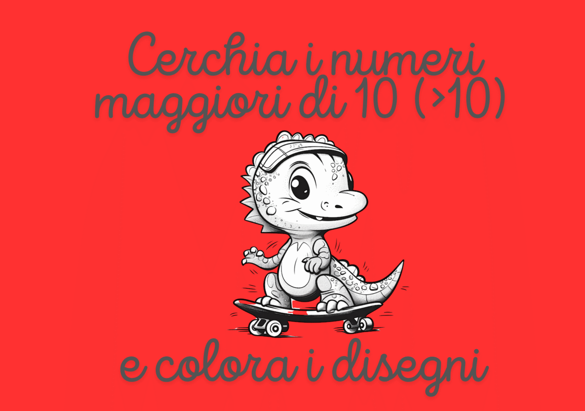 10 Schede Interactive: Ogni pagina propone una pioggia di numeri sparsi tra i quali il bambino dovrà scovare e cerchiare solo quelli maggiori di 10 ($> 10$).