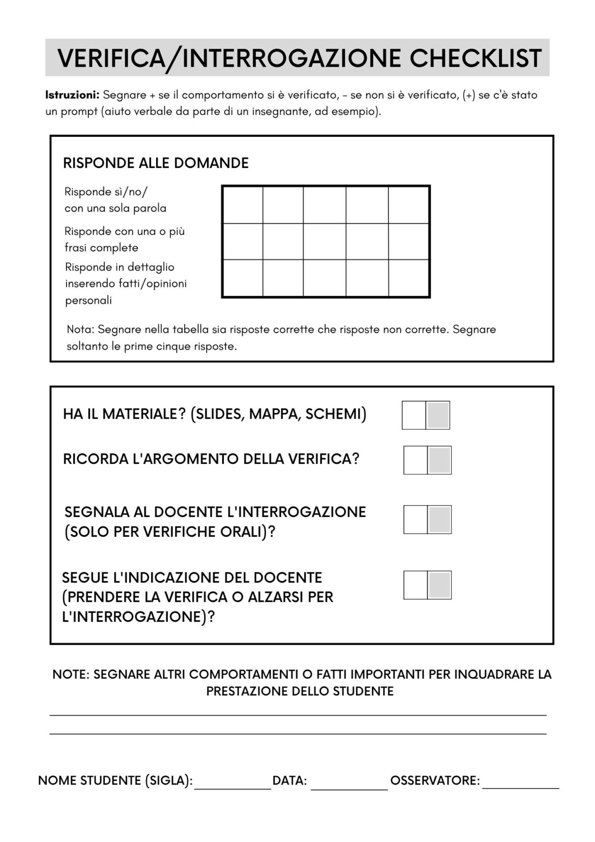 La checklist aiuta lo studente con BES a organizzarsi in vista di una verifica – pensata per studenti della scuola secondaria.