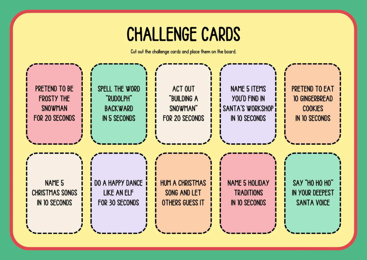 - Pedine fai da te: Include template facili da colorare per le pedine personalizzate, a tema natalizio.