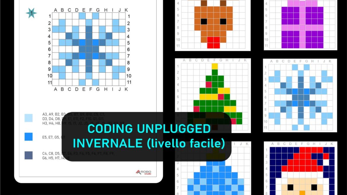 Questo set di 6 schede di coding invernale a livello facile è un’attività educativa e divertente pensata per i bambini … Leggi tutto Coding unplugged invernale – carte di attività natalizie: codifica e colora (Inverno, Natale, Babbo Natale, renna, albero di Natale)- 6 schede di lavoroDigitale